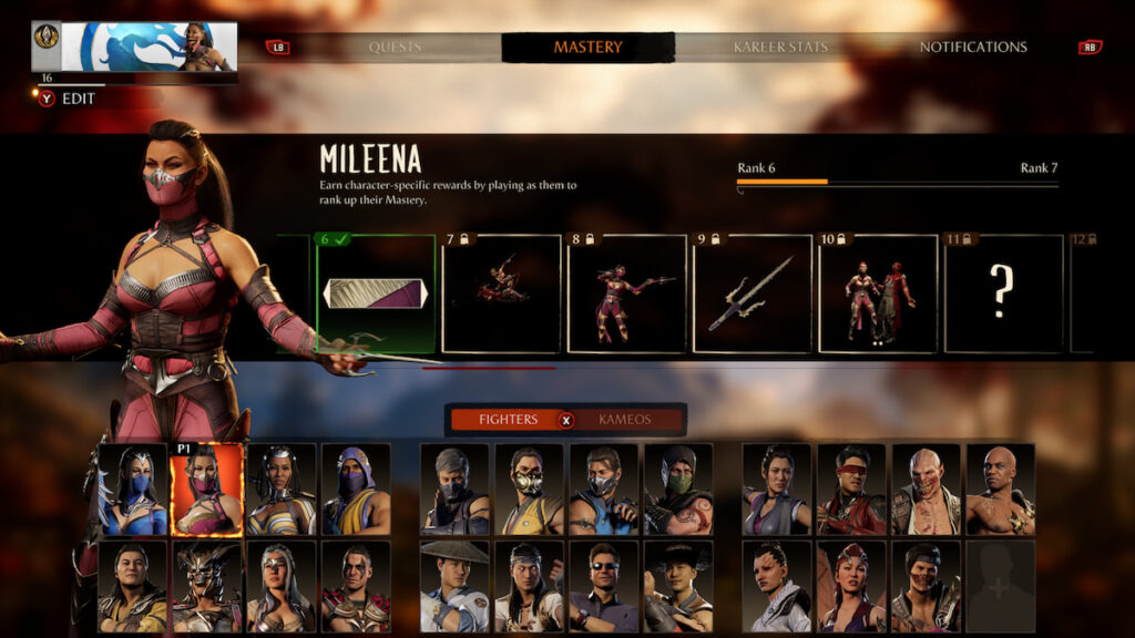 To access Fighter Mastery in MK1, navigate to the main menu or enter Invasions mode. Once there, press the View button on an Xbox controller or the Touch Pad on a PlayStation controller to unveil your daily and weekly quests. Next, hit RB or R1 to transition to the Mastery tab, where the heart of Fighter Mastery unfolds.