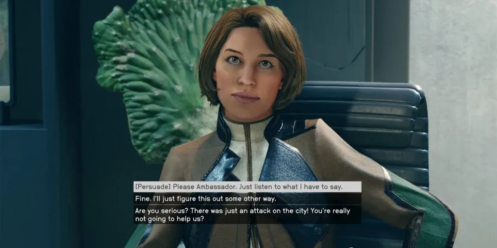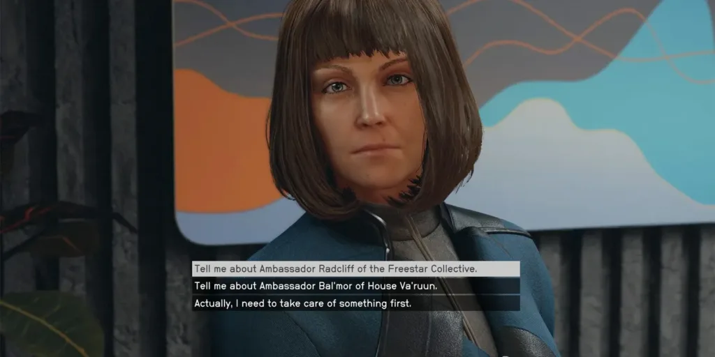 - Meeting Radcliff: Head to the Freestar Embassy and locate Radcliff, a key figure with knowledge of the Archival Code. However, obtaining it won’t be straightforward, as Radcliff won’t give it up willingly. You have two options: persuade her or resort to blackmail.