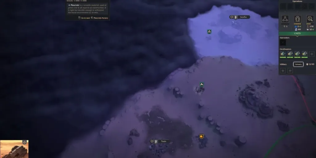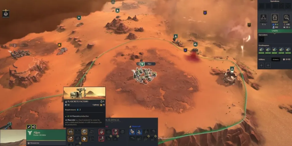 It’s important to note that you can only build a Plascrete Factory in villages under your control. To gain control of a village, you must command your troops to attack it by right-clicking on the village. Keep in mind that villages in Dune: Spice Wars are guarded by local militia, and you’ll need to defeat them to seize control. Once you have control of a village, you can construct various buildings, including the essential Plascrete Factory.