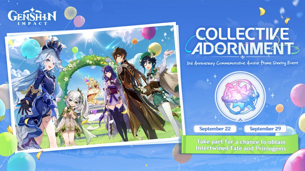 Genshin Impact is gearing up for its highly anticipated third-anniversary celebrations, and players are in for a treat with the “Collective Adornment” web event. This event allows players to craft a personalized avatar frame, share it on social media, and stand a chance to win coveted rewards like Intertwined Fates and Primogems. Here’s a guide on how to partake in this exciting event: