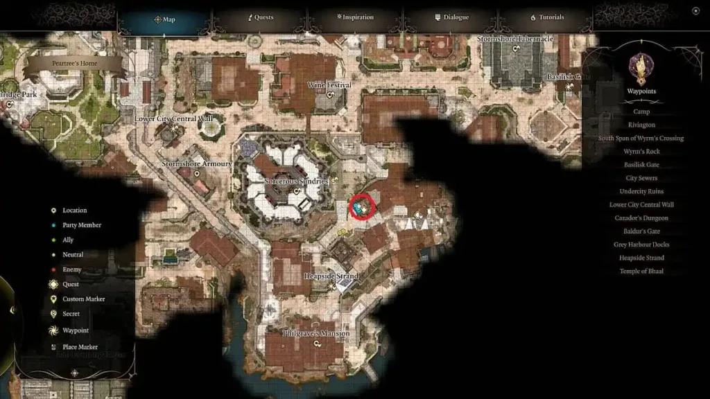 Dribbles’ Foot can be found in the building south of Crimson Draughts, labeled as Rainforest’s House. You’ll need to lockpick the front door to gain entry, which Astarion can handle. There’s a hatch leading down, and you’ll discover the Clown’s Severed Foot on the body of Winslow Reginol. Be cautious when approaching the body, as there are traps.