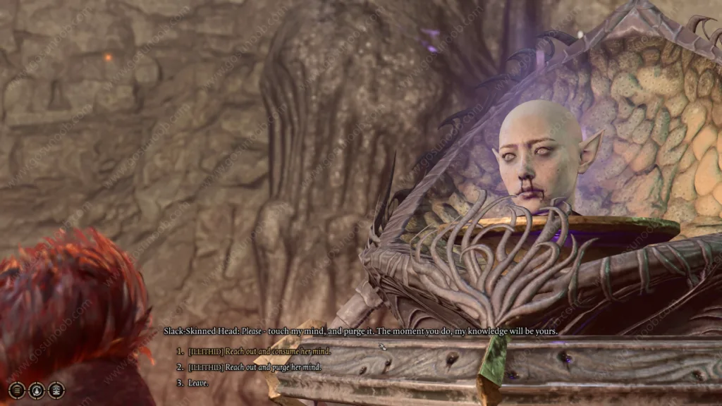 When you interact with the Waking Mind, it will offer to impart knowledge in exchange for withering, purging, or consuming the mind afterward. Opt to purge the mind, and you’ll receive the Githzerai Mind Barrier buff as your reward, granting you a significant advantage on Intelligence Saving Throws.