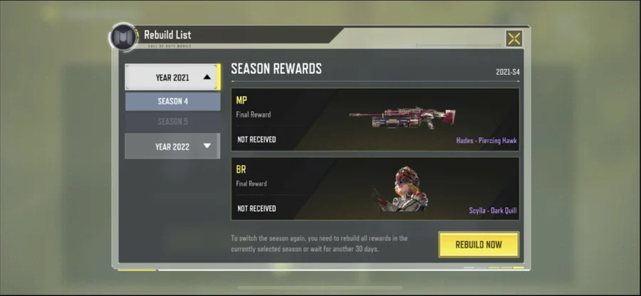 - Go to ‘Construct Rewards’ and choose Season 4 in Year 2021.