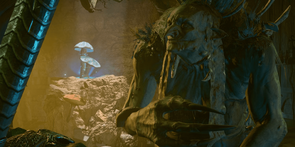 Pearlspore Bell: Three mushroom clusters, known as Pearlspore Bells, pose another challenge. They will resurrect Auntie Ethel with full health if she is defeated. These clusters regenerate their hit points at the end of each round. You must target each Pearlspore Bell with your party members to prevent Auntie Ethel’s revival. The cantrip Chill Touch can also be helpful, as it prevents all healing for a full round.