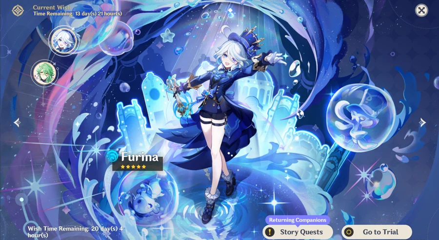 - “Endless Solo of Solitude” Furina, a Hydro sword user (5-star character)