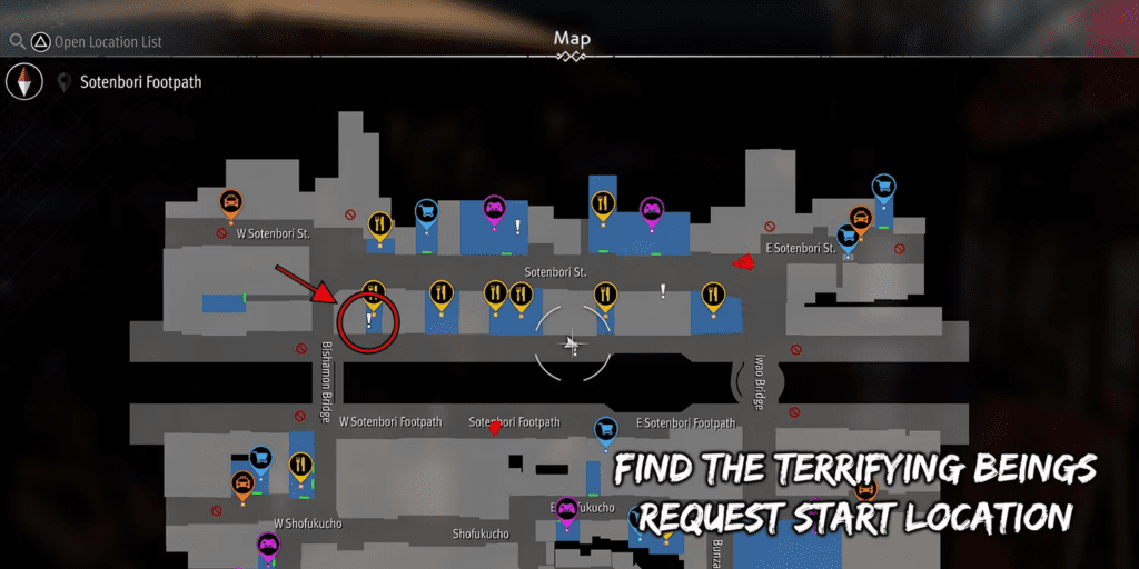 To fulfill the quest, Joryu must snap a photo showcasing all three mythical creatures together: a dragon, a pufferfish, and a thunder god. Positioning himself near the intersection of W Sotenbori Street and Cabaret Grand, Joryu captures the dragon atop Kinryu Ramen, the pufferfish from a neighboring eatery, and the thunder god over Sunrise in a single photograph using his phone camera.