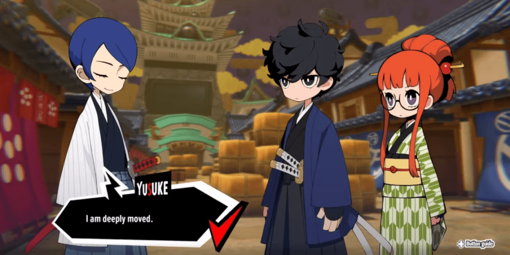 - Engage Yusuke to assail the nearby guard, triggering Morgana’s subsequent Follow-Up and initiating a Drummer.