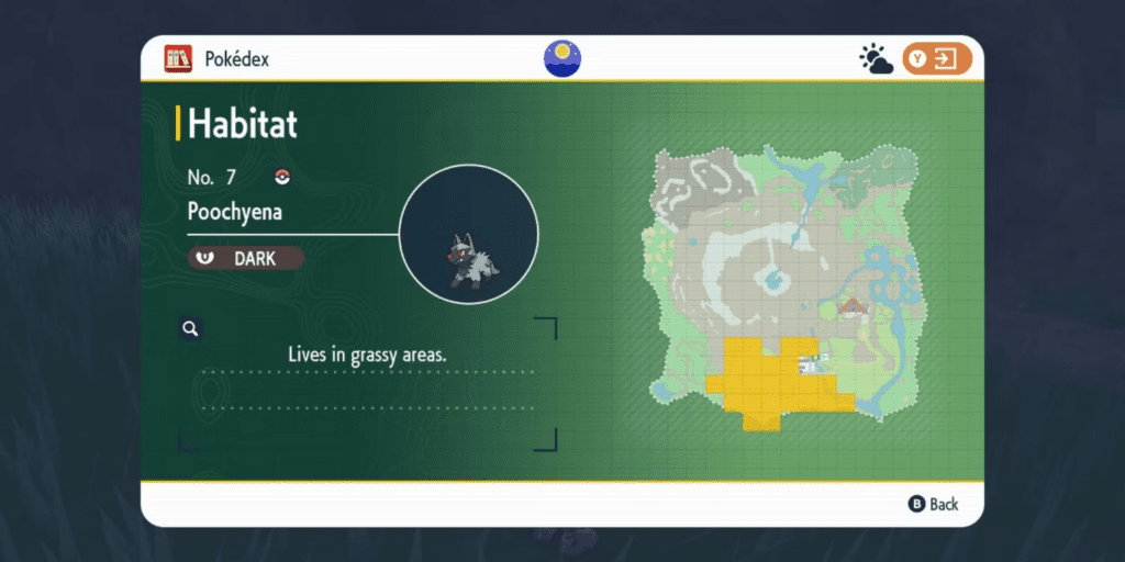Poochyena, a Dark-type Pokemon reminiscent of hyenas, is a common sight across Kitakami. Players can easily spot these bite Pokemon near the bus stop and within the grasslands near Mossui Town, both during the day and night.